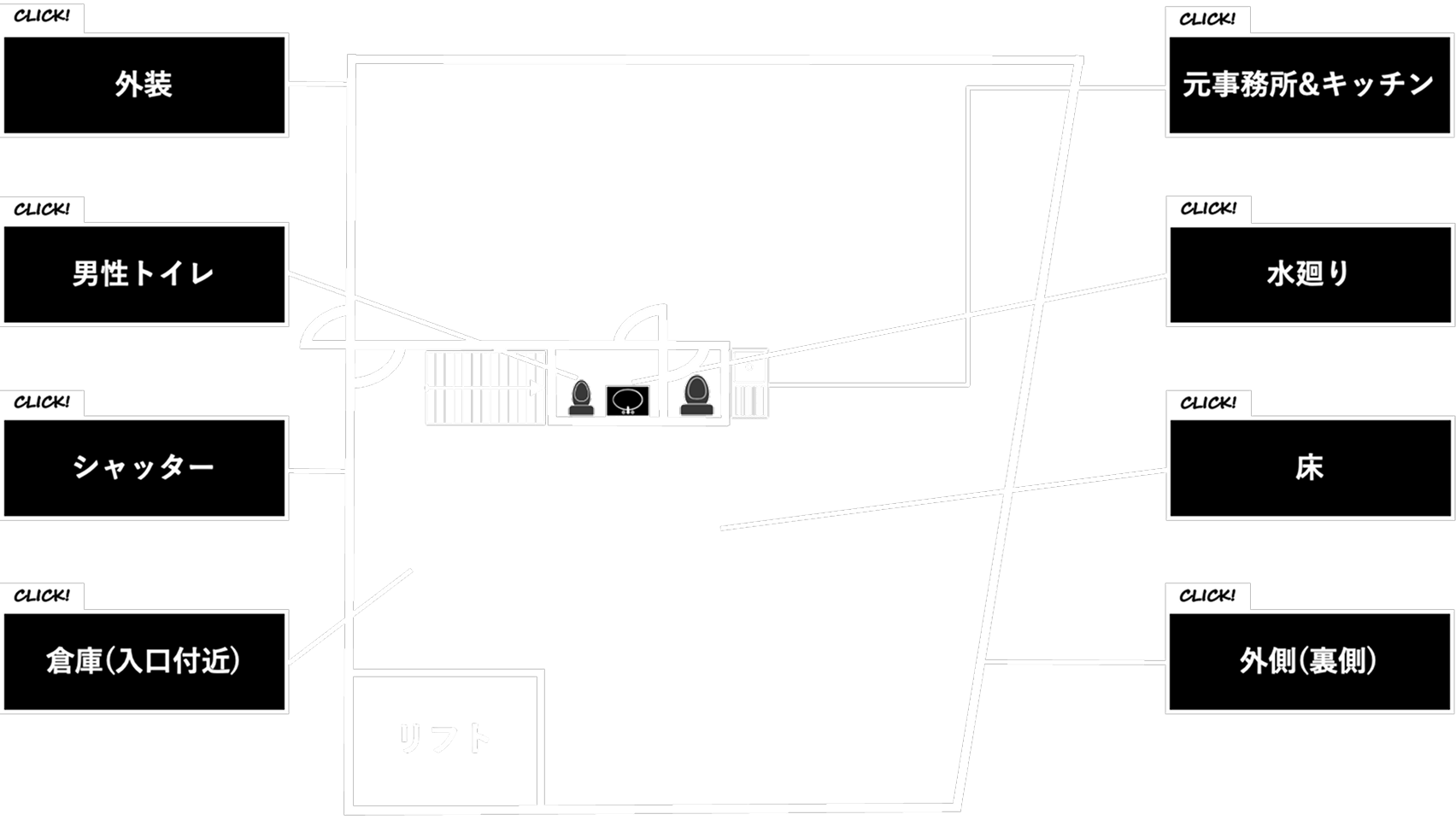 建物図の各エリアをクリックすると、リフォーム内容の詳細(Before / After)がご覧いただけます。
